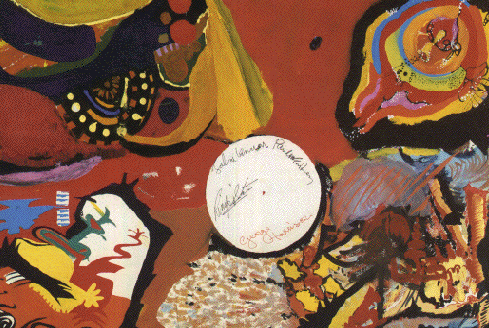 This would have to be one of the most valuable pieces of Beatles collectibles. It is the painting, named "Images of a Woman" that all four of the Beatles painted while staying in the Tokyo Hilton while in Japan in 1966. When they were finished with the painting, they all signed it in the middle (where the lamp sat while they were painting). The painted was presented by the Beatles to fan club president Tetsuaburo Shimoyama. The last it was seen was in 2005 in an ebay auction.